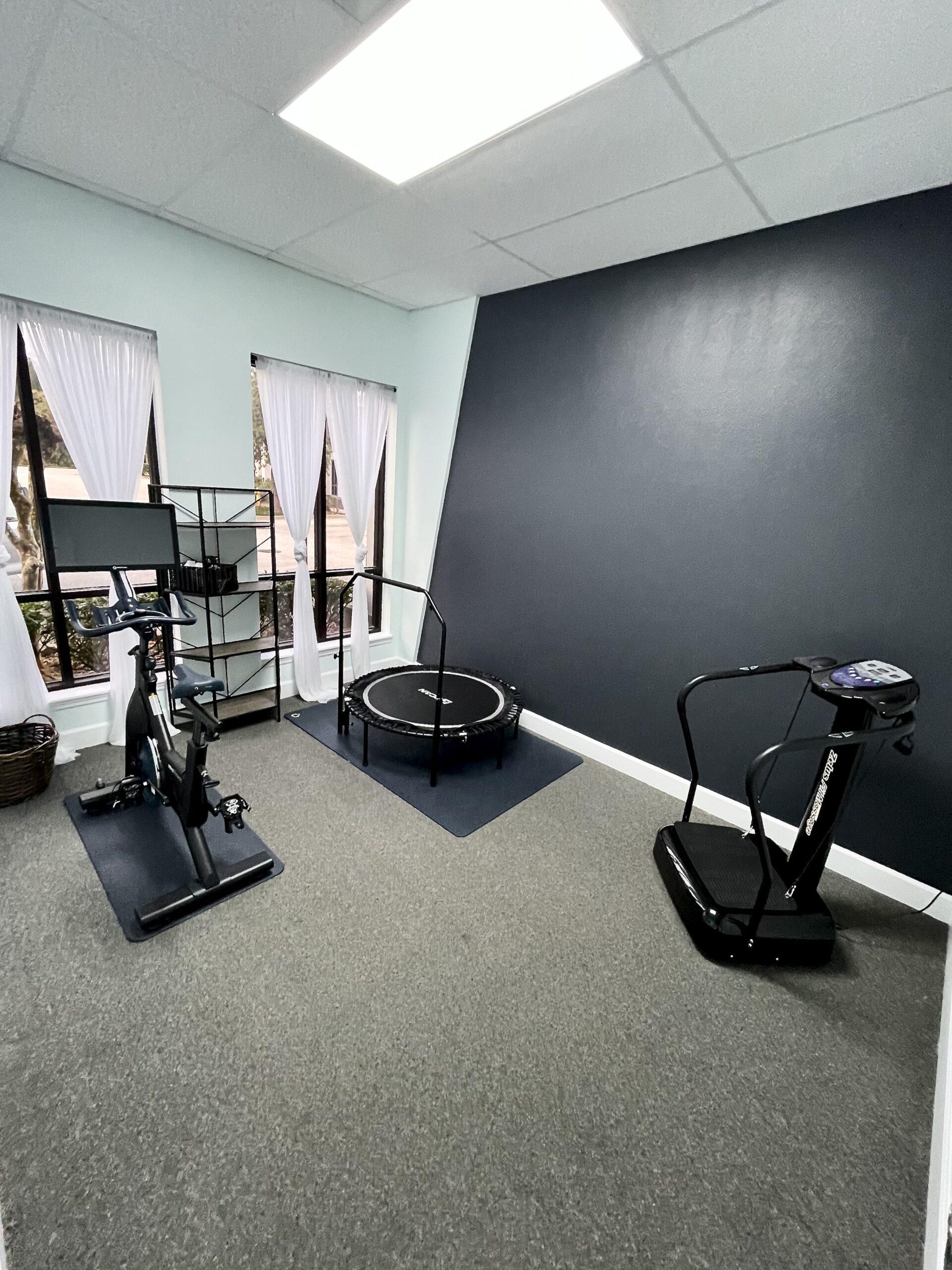 This room offers gentle movement and recovery tools that complement your red light and sauna sessions – helping your body relax, reset, and keep things moving without pushing or strain.